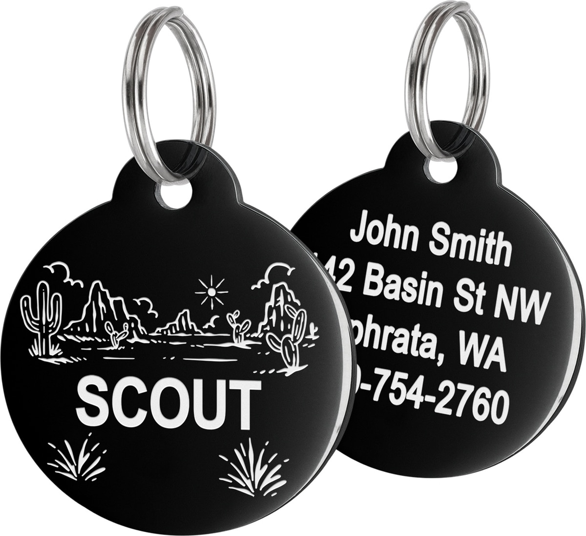 GoTags Desert Design Stainless Steel Personalized Dog & Cat ID Tag, Black, Regular