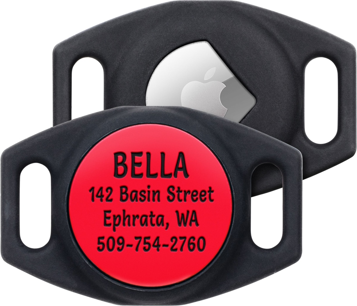 This Apple AirTag Holder is personalized with the dog or cat's ID, even though there's no Apple AirTag attached to it, the information on the holder can help to get them home safely. It is suitable to be used without the AirTag.