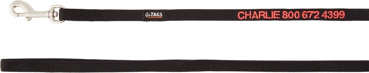 GoTags Nylon Personalized Dog Leash, Black, Small: 6-ft long, 3/8-in wide