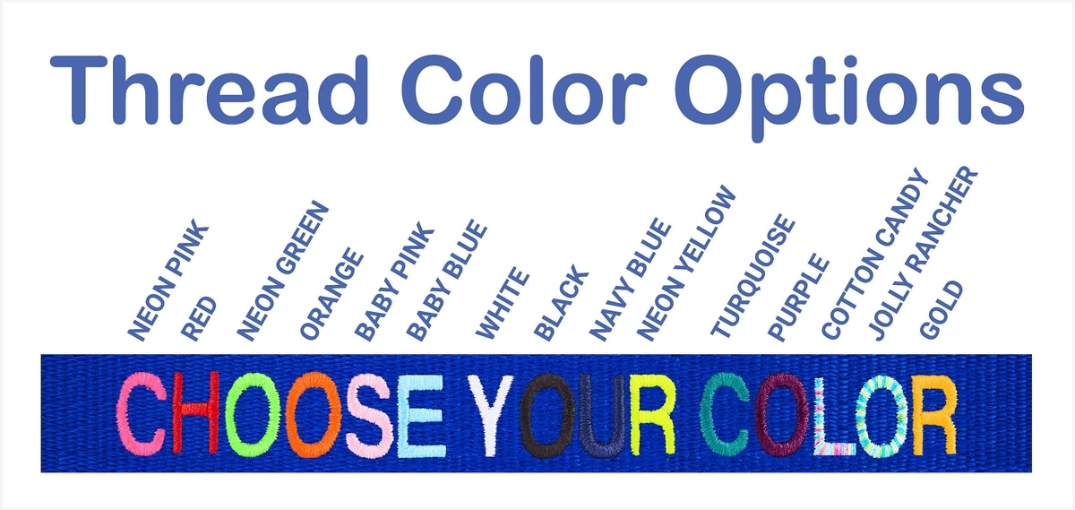We want to make sure your text stands out, so we don’t offer the option to match the thread color with the collar or leash color.