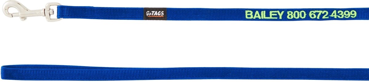 GoTags Nylon Personalized Dog Leash, Blue, Small: 6-ft long, 3/8-in wide