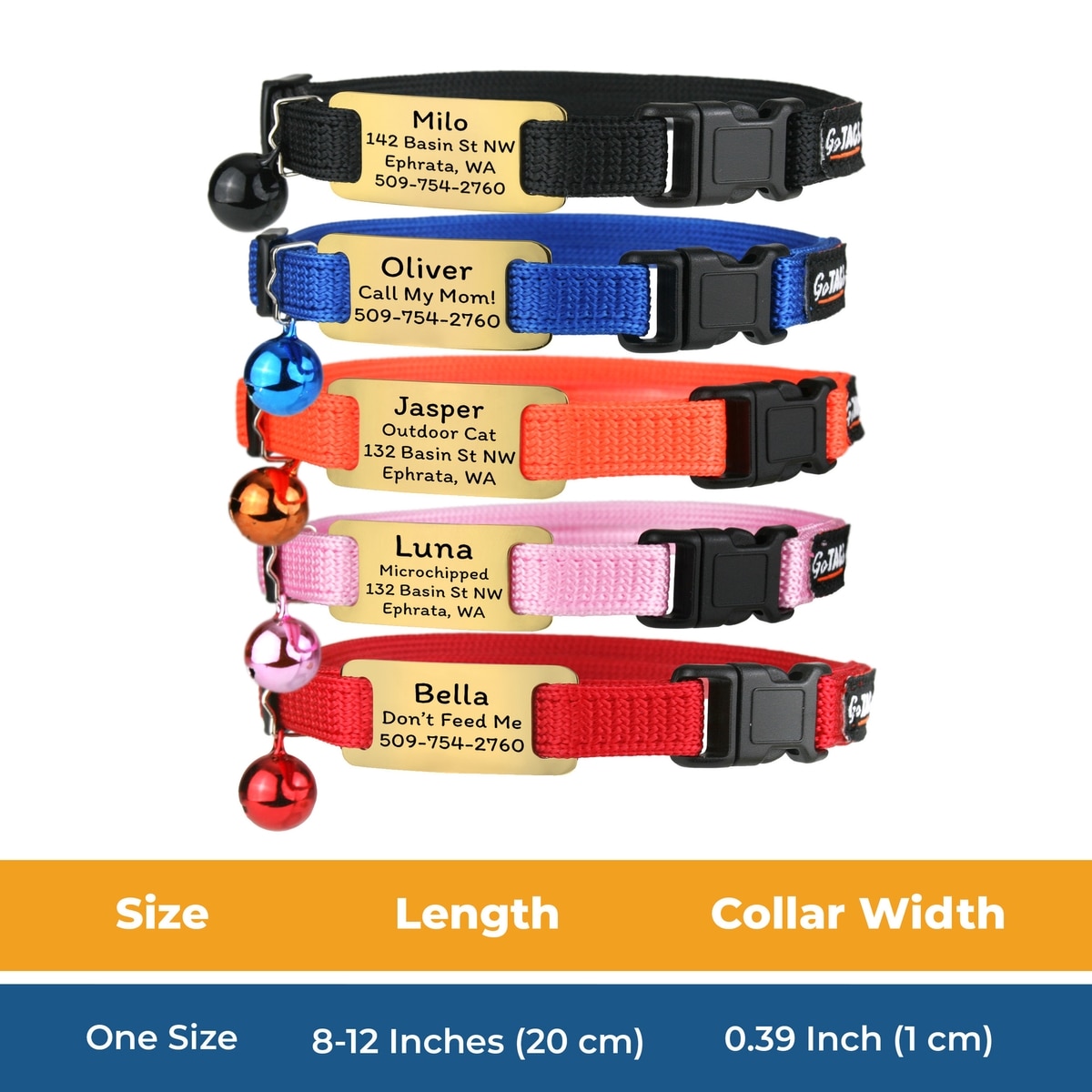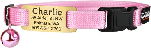 GoTags Personalized Breakaway Cat Collar with Engraved Tag & Bell, Pink/Gold, 8 to 12-in neck, 3/8-in wide