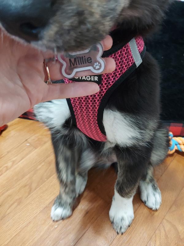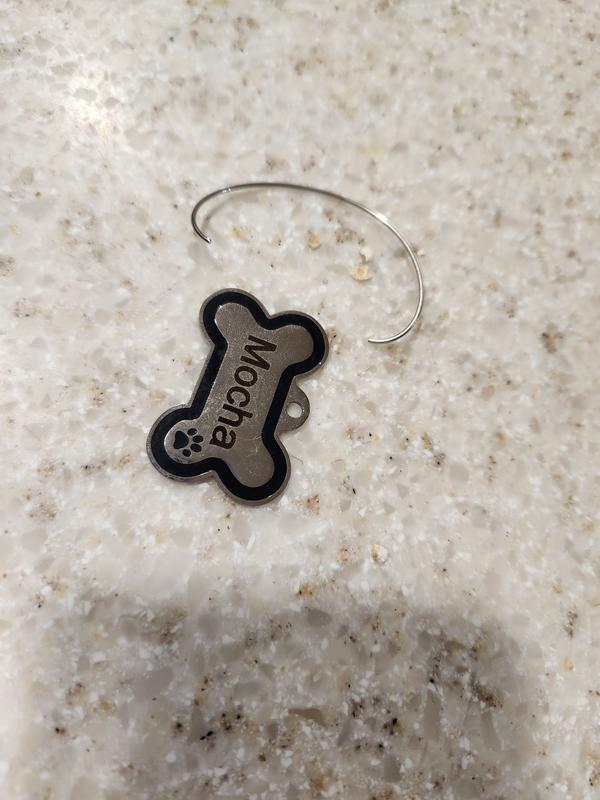 This dog tag can be personalized with the pet's name on the front and up to 4 lines of engraving on the back.