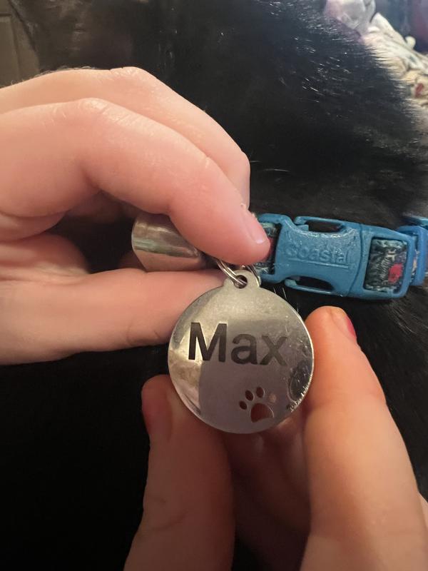 GoTags Round with Paw Cutout Stainless Steel Personalized Dog & Cat ID Tag, Purple, Small