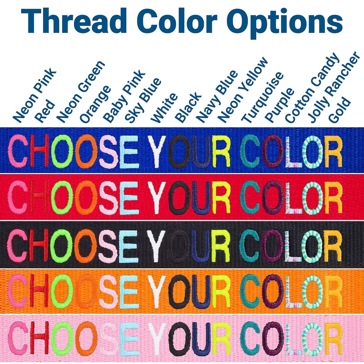 This collar does not come with a range of different fonts. However, it does come with a range of different thread colors to choose from.