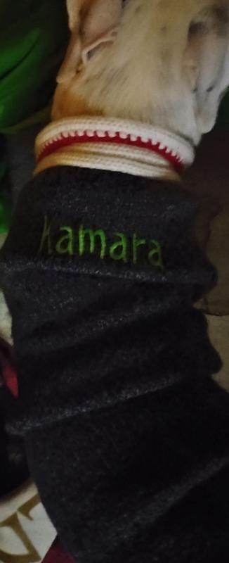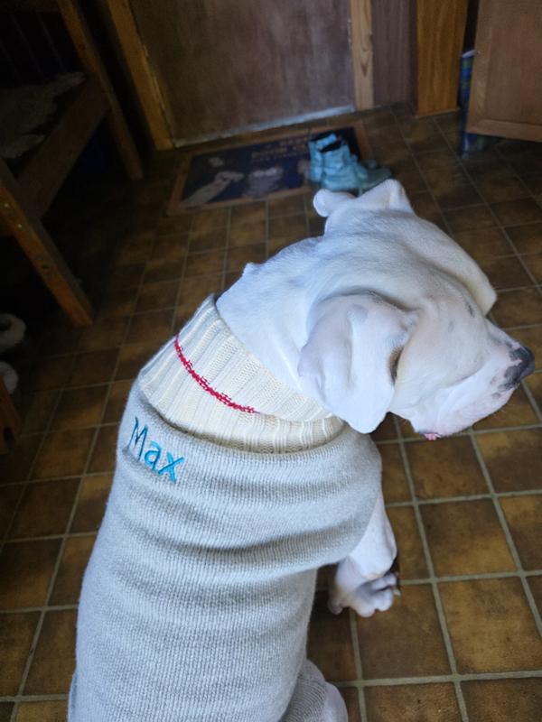 My Frenchie appreciates the warmth. Well made, and the name Bella is on hers, too.