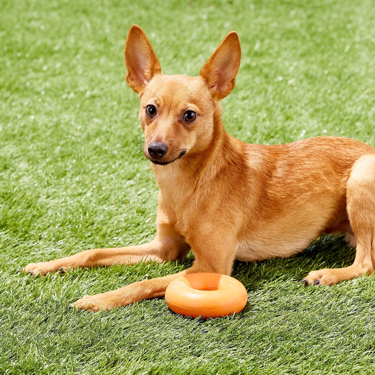 This is our 2nd doughnut ring toy for our Dutch shepherd. He is a chewer and the last one lasted 9 months! Love the toy has a safety feature where if they chew too much there is a red color on the inside that alerts you its time to toss!