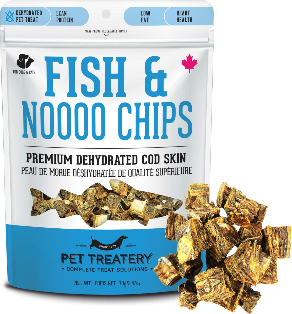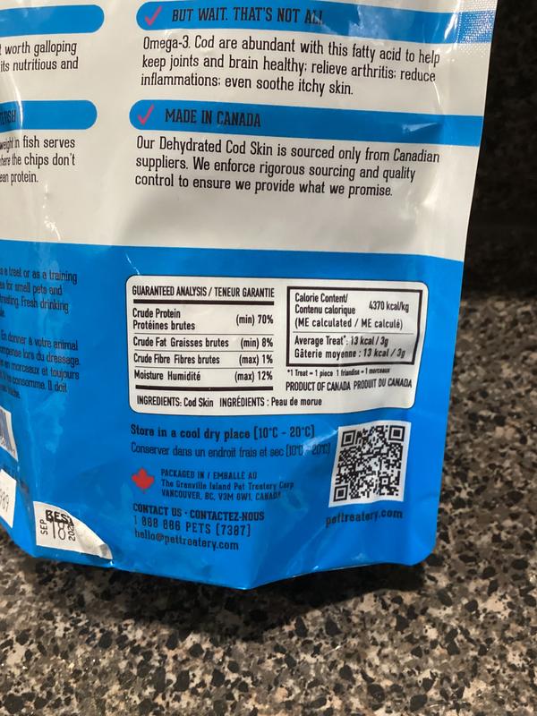 The Granville Island Pet Treatery Fish & Noooo Chips Dehydrated Wild Cod Skin Dog Treats, 2.47-oz bag