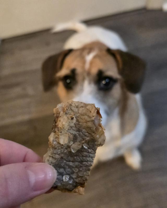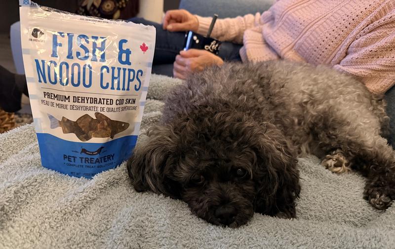 Pet Treatery's Fish & Noooo Chips is Jasper's new favorite treat. Only one ingredient, cod skin, and is a perfect light and crunchy snack packed with Omega-3 and