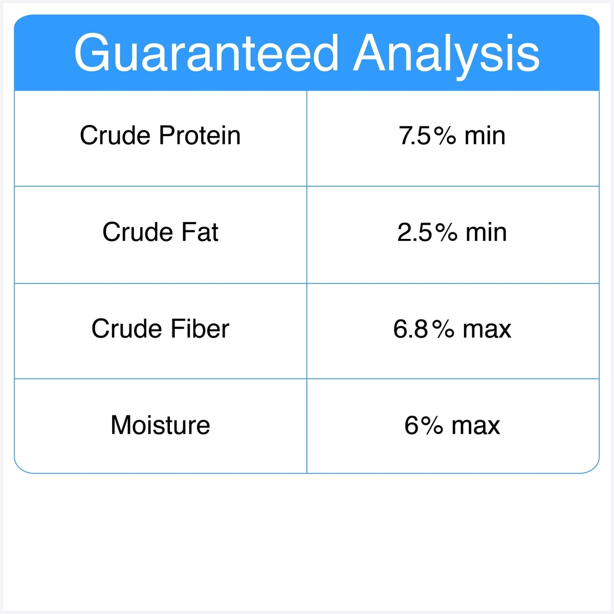 | Crude Fiber | 6.8% max |