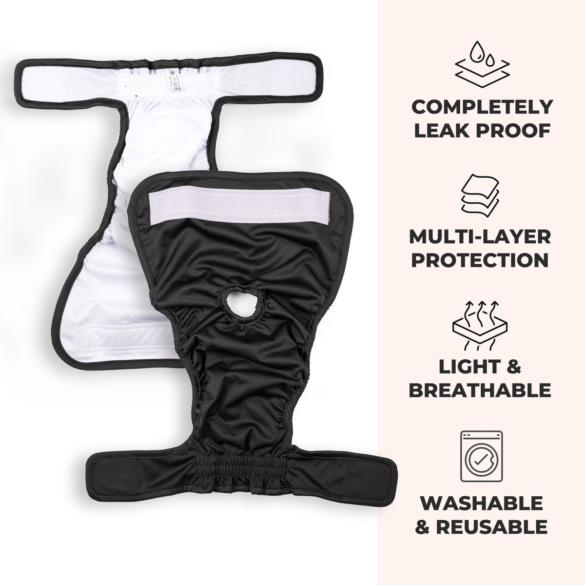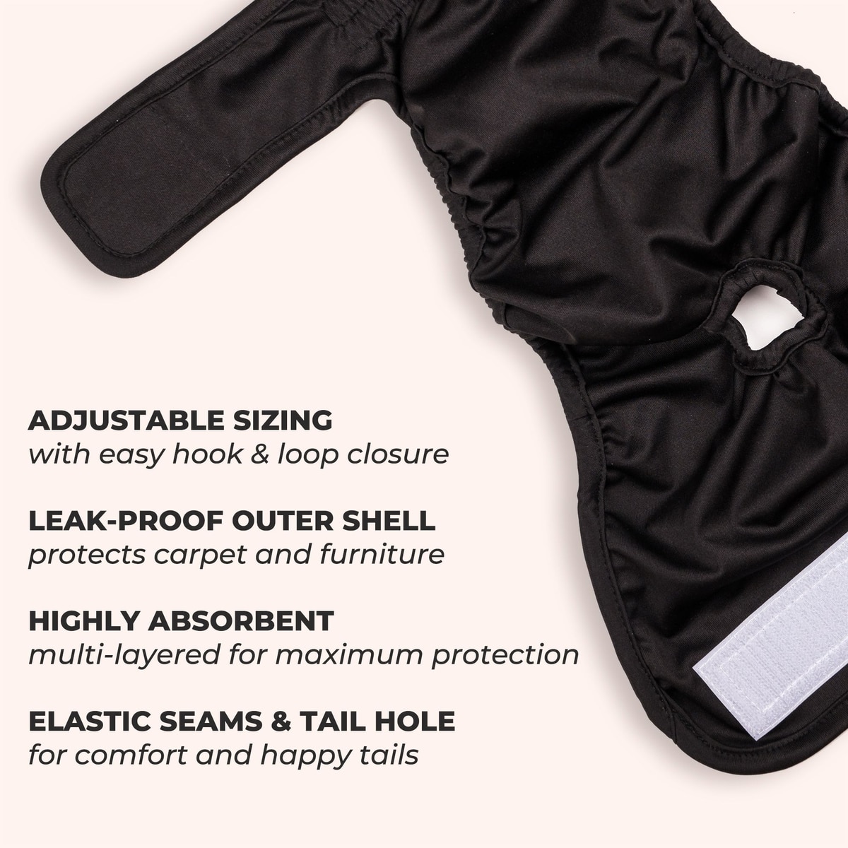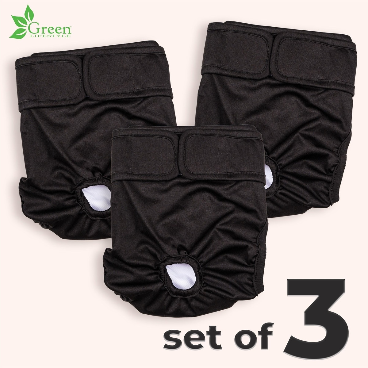 Green Lifestyle Washable Dog Diapers, 3 count, Black, Medium: 14.5 to 18.5-in waist