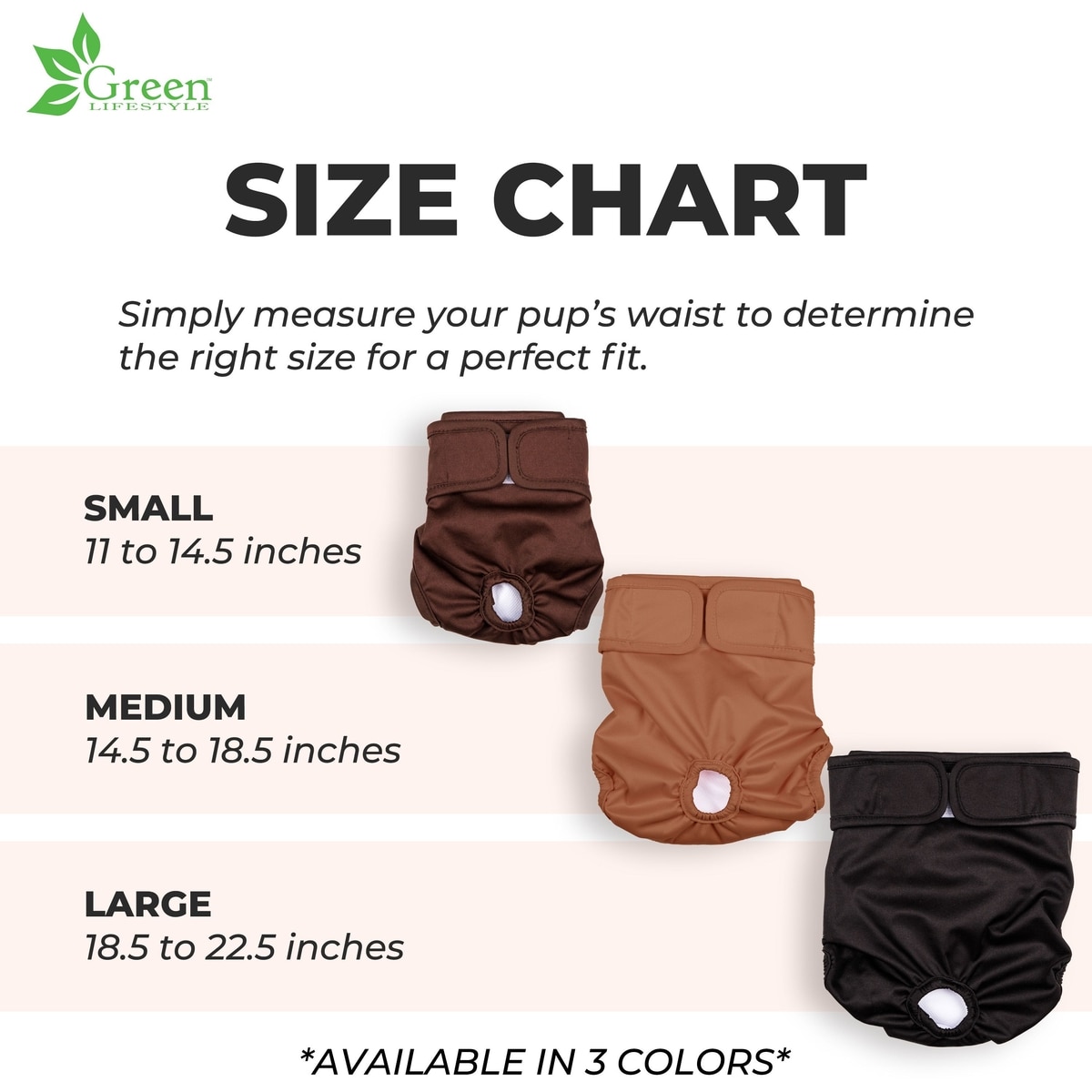 Green Lifestyle Washable Dog Diapers, 3 count, Assorted Colors, Large: 18.5 to 22.5 -in waist