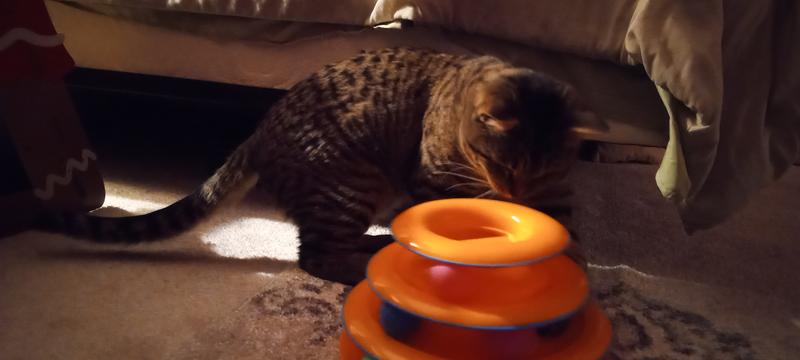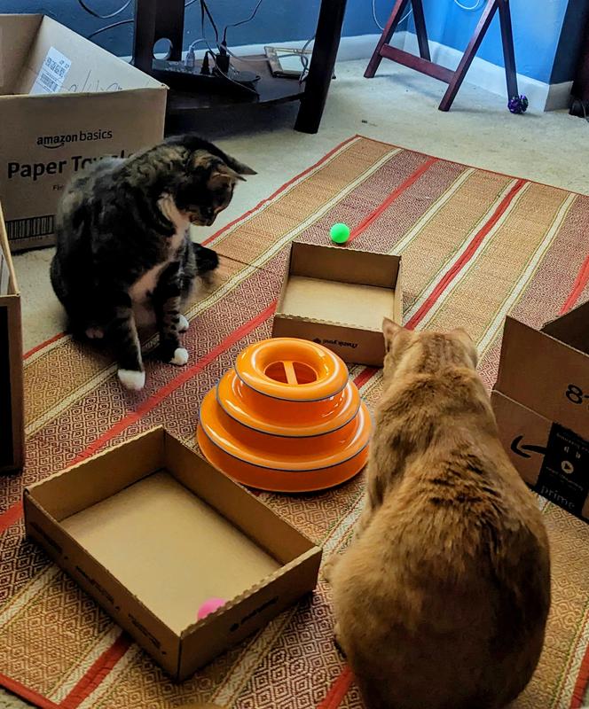 The Tower of Tracks Cat Toy provides long-lasting fun for my cat, she smacks the balls around every day!