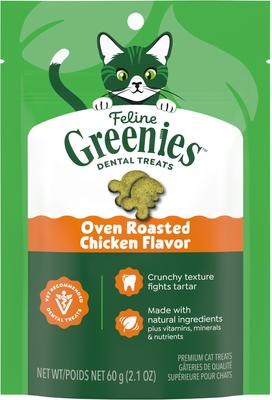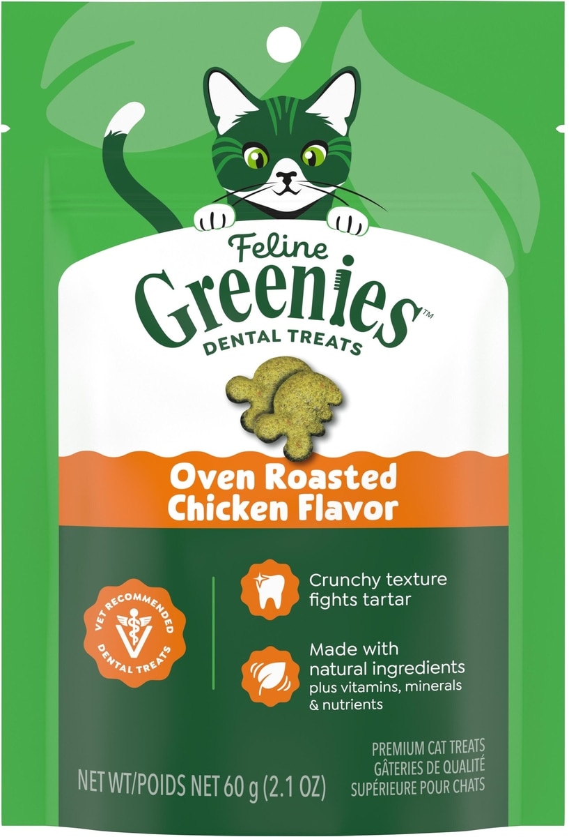- Greenies Feline Catnip Flavor Adult Natural Dental Cat Treats, 2.1-oz bag$3.28 Chewy Price$3.99 List Price$3.12 Autoship PricePromo, New Customers Only: Spend $49+, Get $20 eGift Card