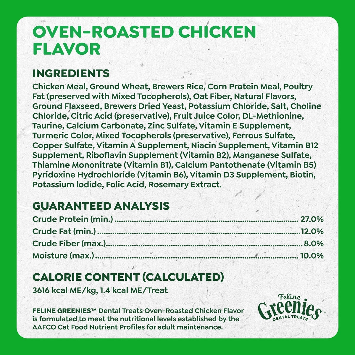 Greenies Feline Oven Roasted Chicken Flavor Adult Natural Dental Cat Treats, 2.1-oz bag