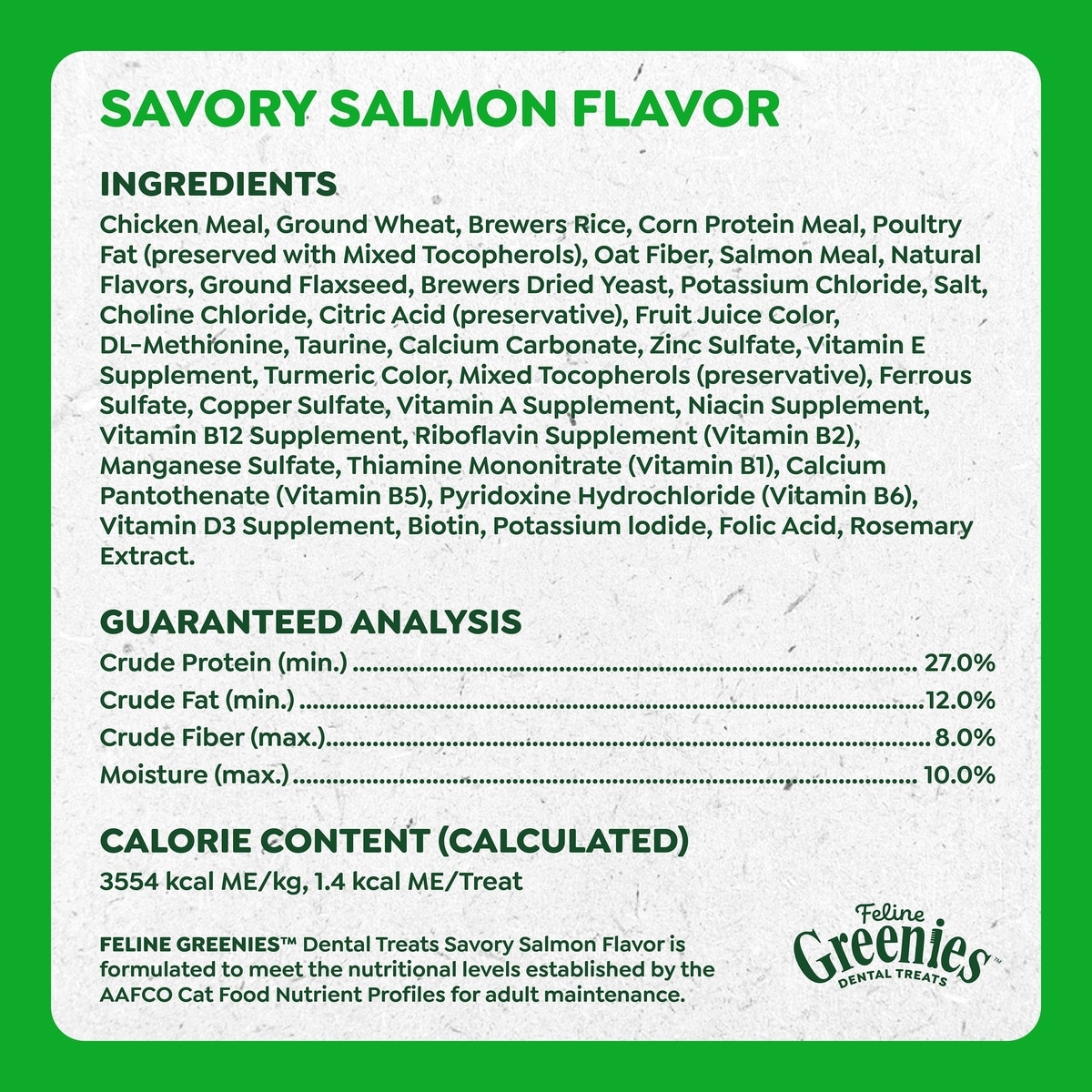 Greenies Feline Savory Salmon Flavor Adult Natural Dental Cat Treats, 21-oz tub