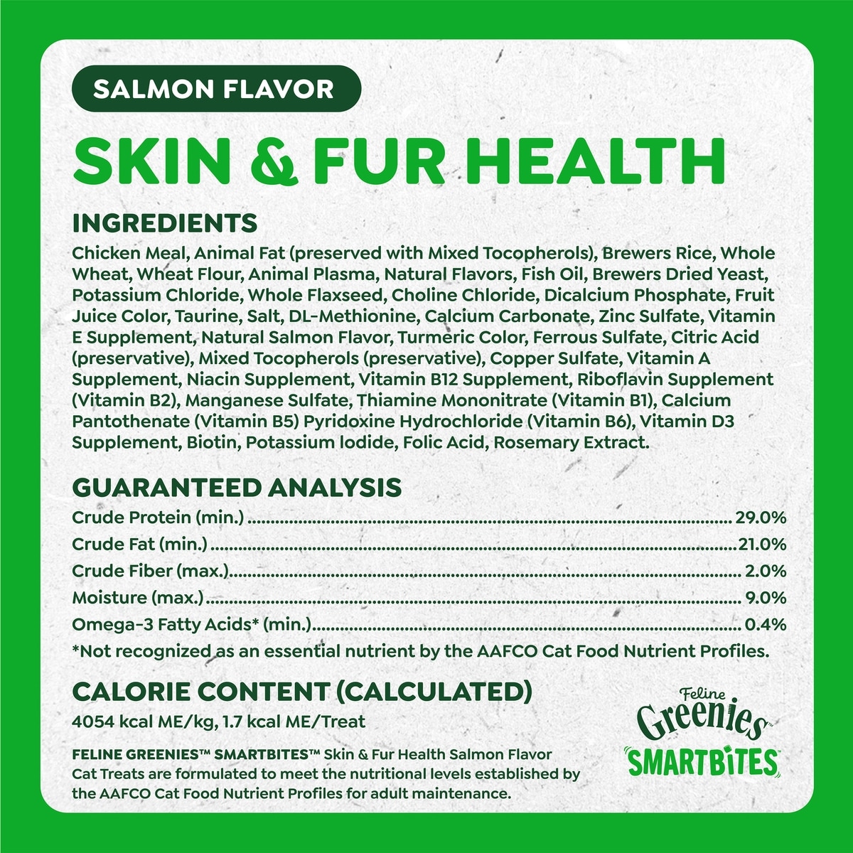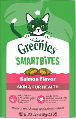 - Greenies Feline SmartBites Healthy Skin & Fur Natural Chicken Flavor Soft & Crunchy Adult Cat Treats, 2.1-oz bag$3.28 Chewy Price$3.99 List Price$3.12 Autoship PricePromo, New Customers Only: Spend $49+, Get $20 eGift Card