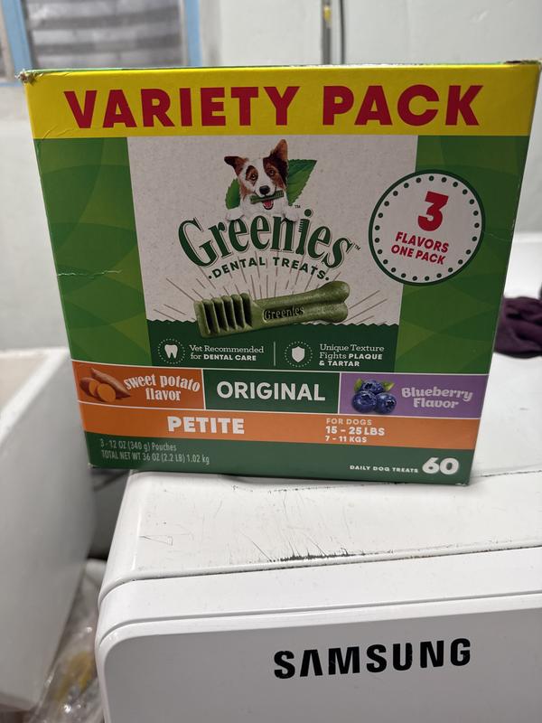 - Greenies Variety Pack Natural Petite Dental Dog Treats, 60 count$39.96 Chewy Price$41.99 List Price$37.96 Autoship PricePromo, New Customers Only: Spend $49+, Get $20 eGift Card