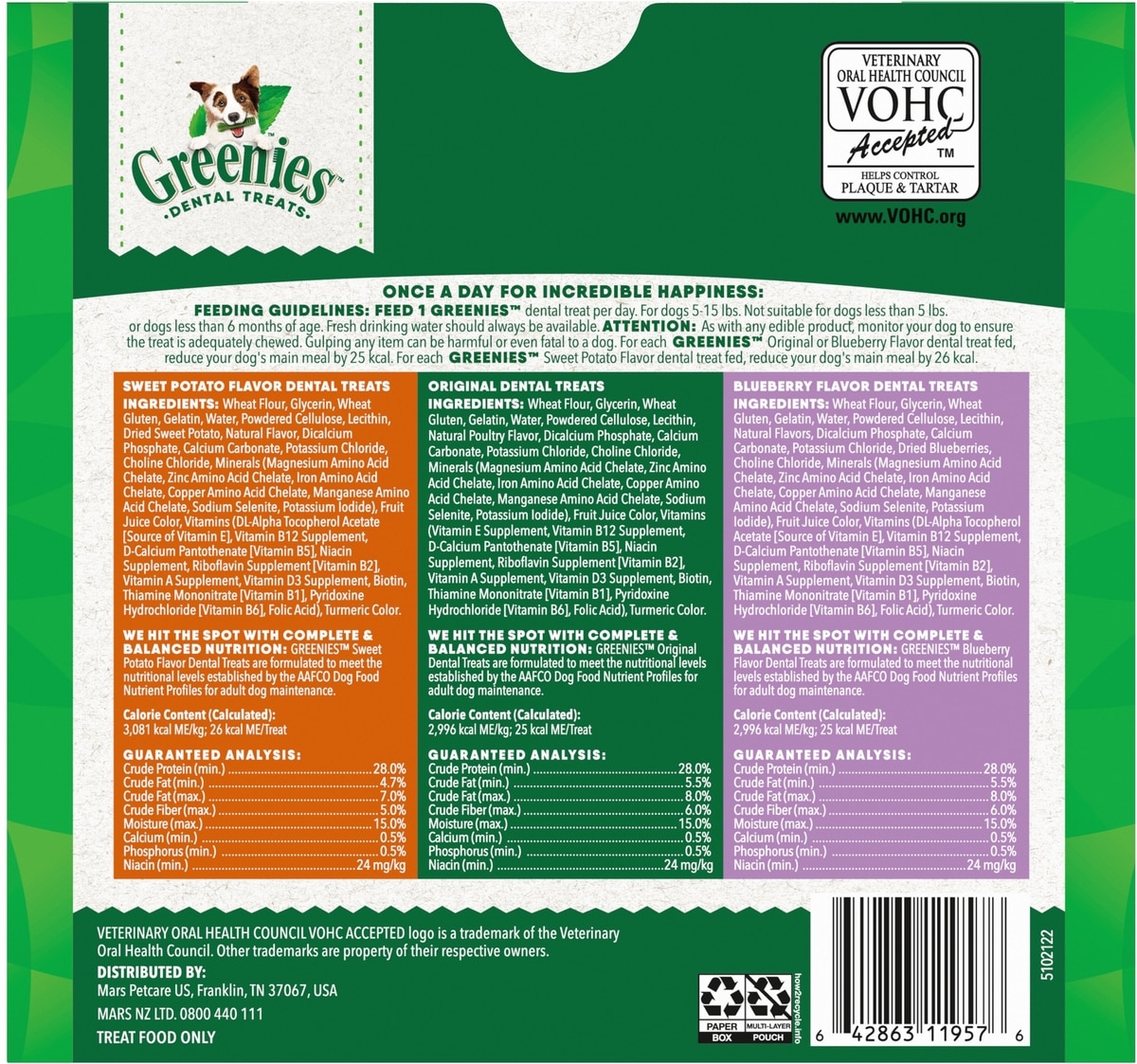 - Greenies Natural Dental Care Petite Size Sweet Potato Original Chicken & Blueberry Dental Dog Treats, 60 count$39.96 Chewy Price$41.99 List Price$37.96 Autoship PricePromo, New Customers Only: Spend $49+, Get $20 eGift Card