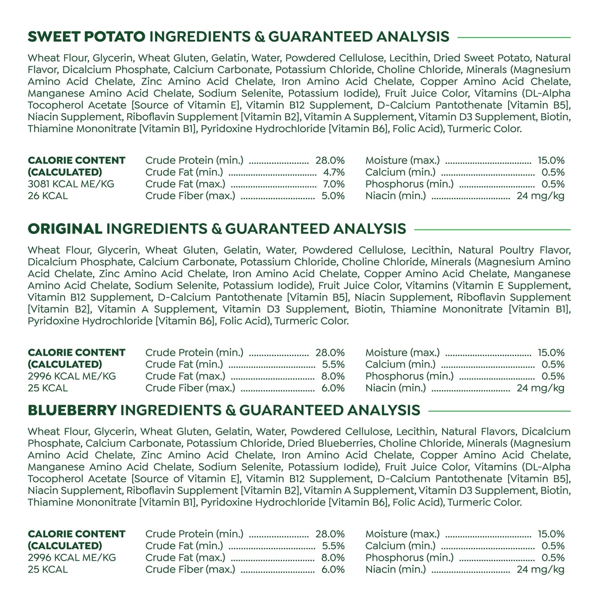 - Greenies Natural Dental Care Regular Size Sweet Potato Original Chicken & Blueberry Dental Dog Treats, 36 count$39.96 Chewy Price$41.99 List Price$37.96 Autoship PricePromo, New Customers Only: Spend $49+, Get $20 eGift Card