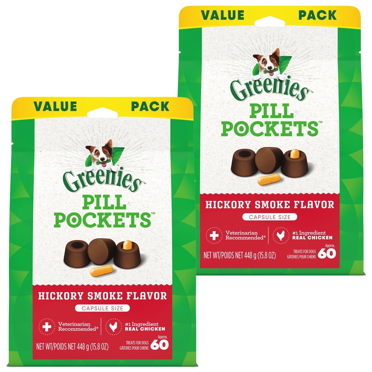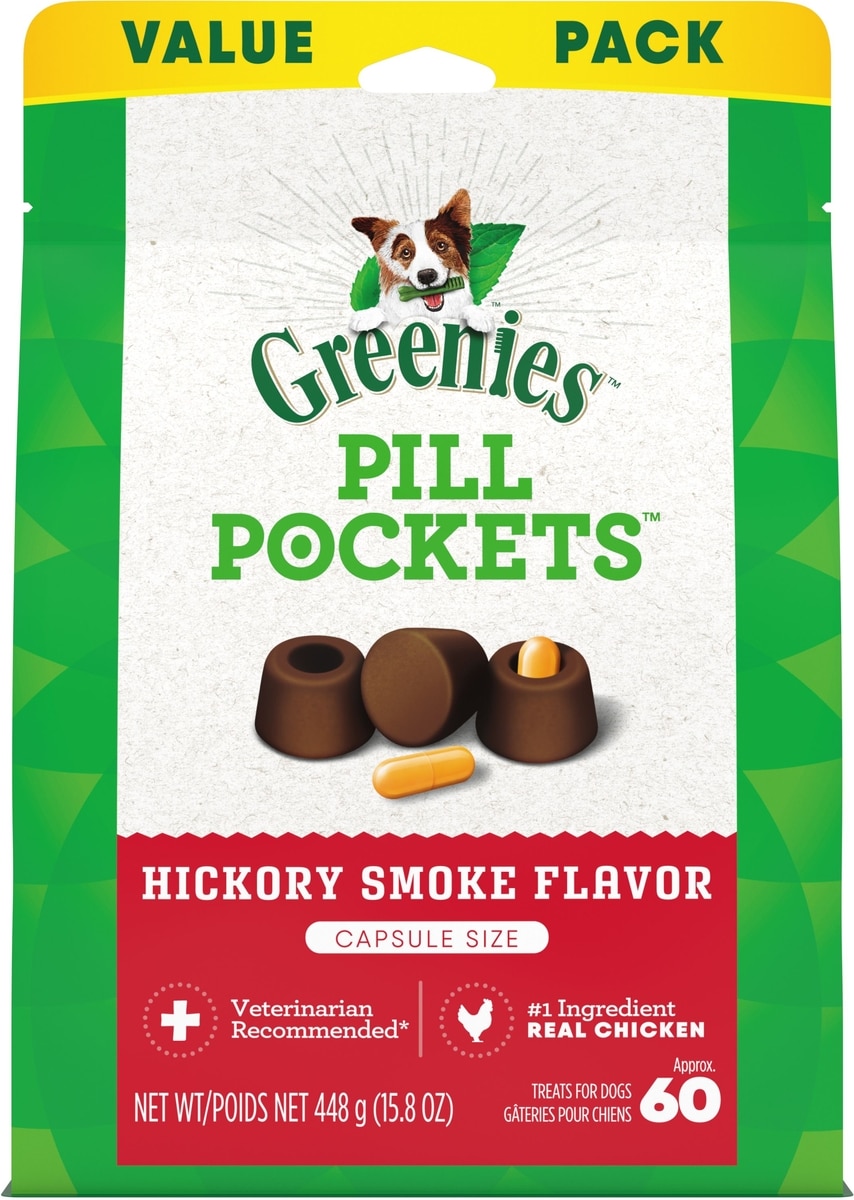 Greenies Pill Pockets Canine Hickory Smoke Flavor Natural Dog Treats, Capsule Size, 120 count