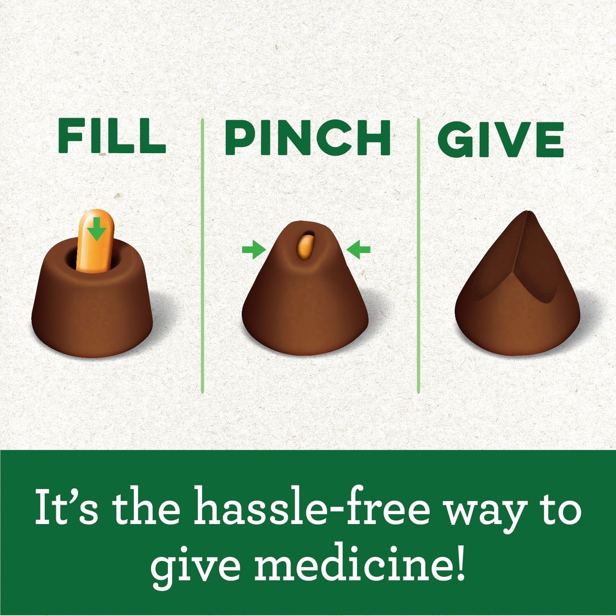 Greenies Pill Pockets are an ingenious way to give your dog their meds. The easy-to-use pouches mask the smell and taste of medicine for less stress. They make taking medication a positive experience for your dog by turning pill time into treat time!