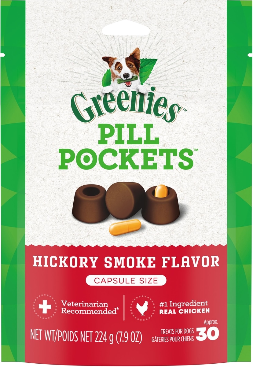 Greenies Pill Pockets Canine Hickory Smoke Flavor Natural Dog Treats, Capsule Size, 180 count