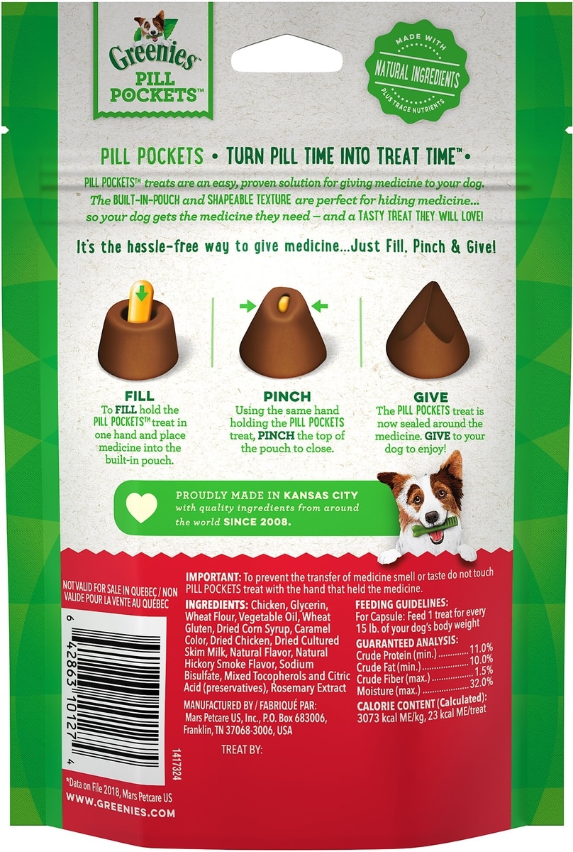 - Greenies Pill Pockets Canine Chicken Flavor Natural Dog Treats, Capsule Size, 180 count bundle$53.82 Chewy Price$65.94 List Price$51.13 Autoship PricePromo, New Customers Only: Spend $49+, Get $20 eGift Card