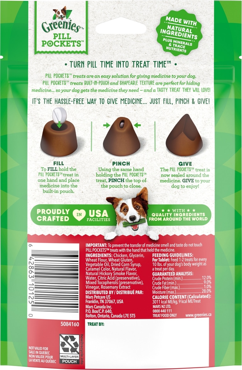 Greenies Pill Pockets are an ingenious way to give your dog their meds. The easy-to-use pouches mask the smell and taste of medicine for less stress. They make taking medication a positive experience for your dog by turning pill time into treat time!