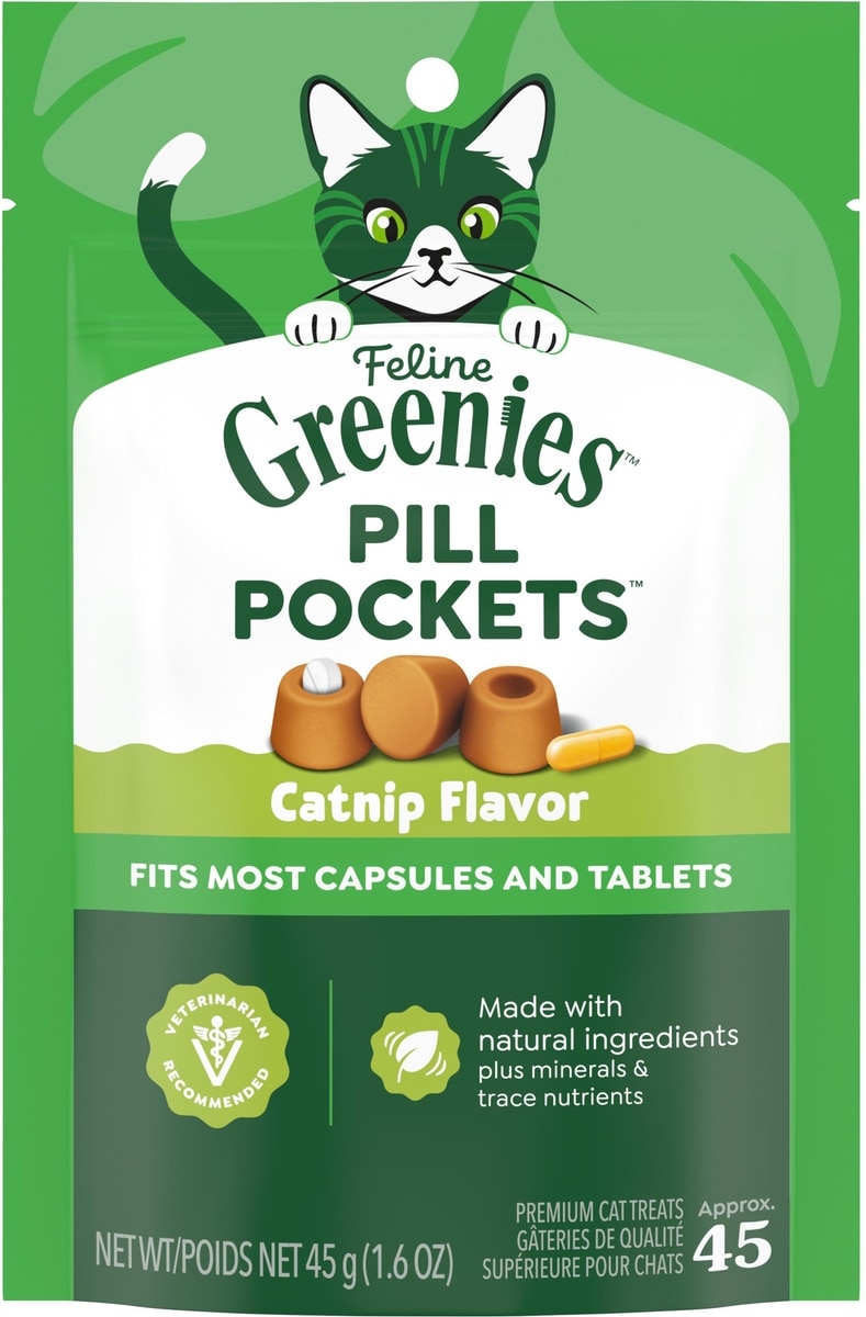 Take the stress out of giving your cat their medicine. Feline Greenies Pill Pockets Treats for Cats easily hide most tablet-sized and capsule-sized pills in a great-tasting meaty treat. They make medicine into a tasty routine!