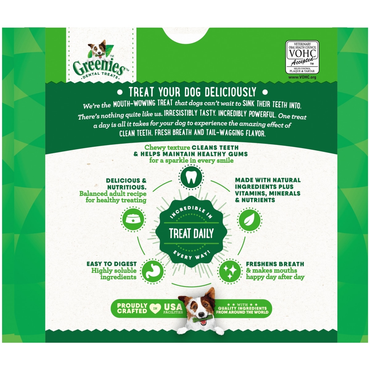 One Greenies Original Dental Treat a day is all it takes for cleaner teeth, fresher breath, and a happy dog. Made with natural ingredients plus vitamins, minerals, and nutrients, these mouth-wowing treats help promote oral hygiene with every bite.