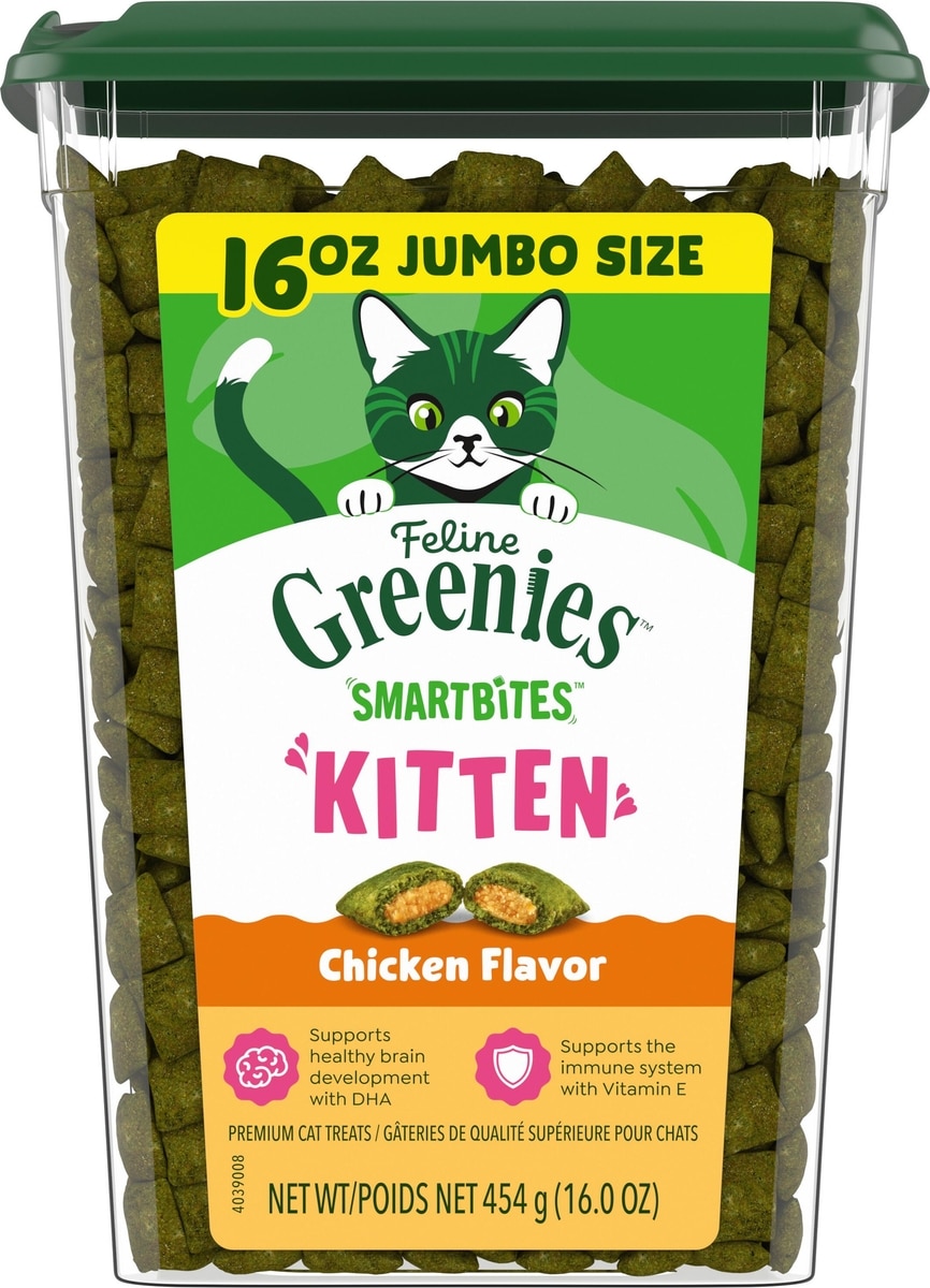 Greenies Smartbites Kitten Chicken Flavor Cat Crunchy Treat, 16-oz tub