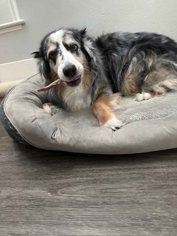 It lasted so long! With all of the chewing it has to be great for their teeth. NO rawhide. 100% beef. Long lasting. What else could you ask for? It will be a staple in my home for my furbabies