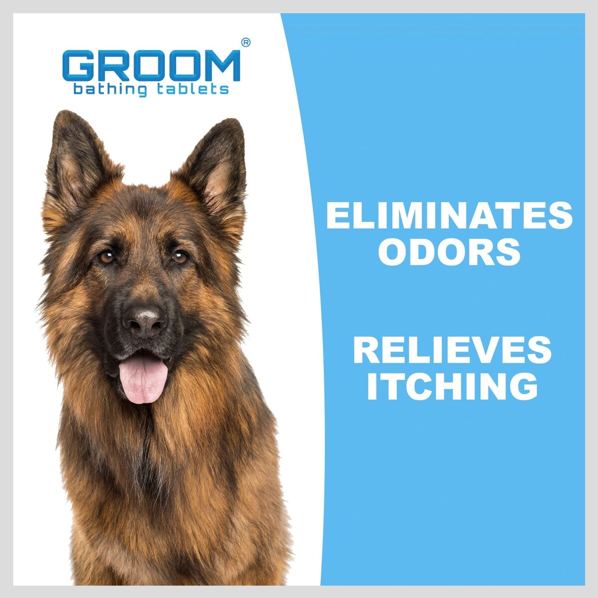 Bathing: Dissolve 1-2 GROOM tablets in up to 10 gallons of warm water (depending on the size of your dog). Bathe your pet with the water for 5-10 minutes. 1 tablet is sufficient for a medium-sized dog Daily Care: Dissolve 1 GROOM tablet in a small tub or bowl of warm water, soak a cloth in the solution, squeeze out excess water, and gently wipe the hair. Repeat a few times. The active water can be kept and used for multiple wipe downs within 24-48hrs. Paw Soak: Drop one GROOM tablet in a small tub with just enough warm water to cover your dog’s paws. Let him stand in the solution for at least 5 minutes. Pat dry, no need to rinse. Reseal pack after use. Store in a cool dry place. Keep out of reach of pets and children
