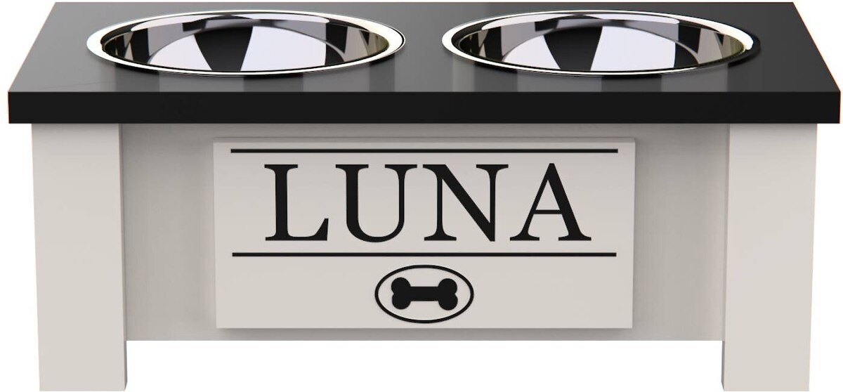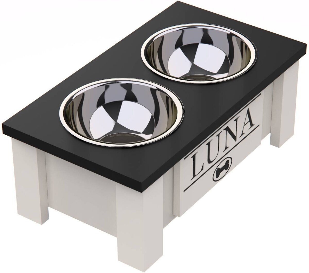 GrooveThis Woodshop Personalized Elevated Dog Feeder Station with Internal Storage, Black, Small