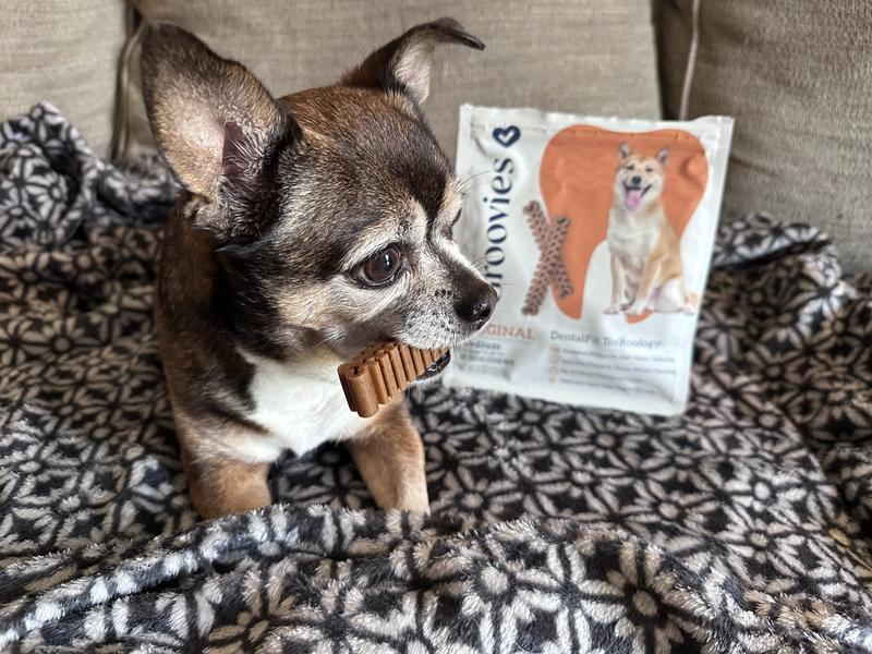 My dog has been enjoying these dental chews. I love that they have specific breed sizes. These small ones are perfect for my chihuahua. They really get in all the nooks and crannies and it’s improved his breath.
