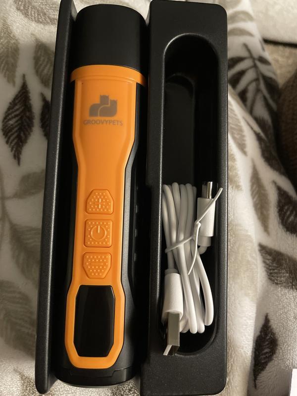 This is a small and relatively quiet grinder for pet nails. My 13 year old cat hates having his nails cut, and this definitely makes it easier. Low noise and maybe even more important, low vibration. Has a usb-c port for recharging, and it lasts for multiple uses before it needs to be plugged in