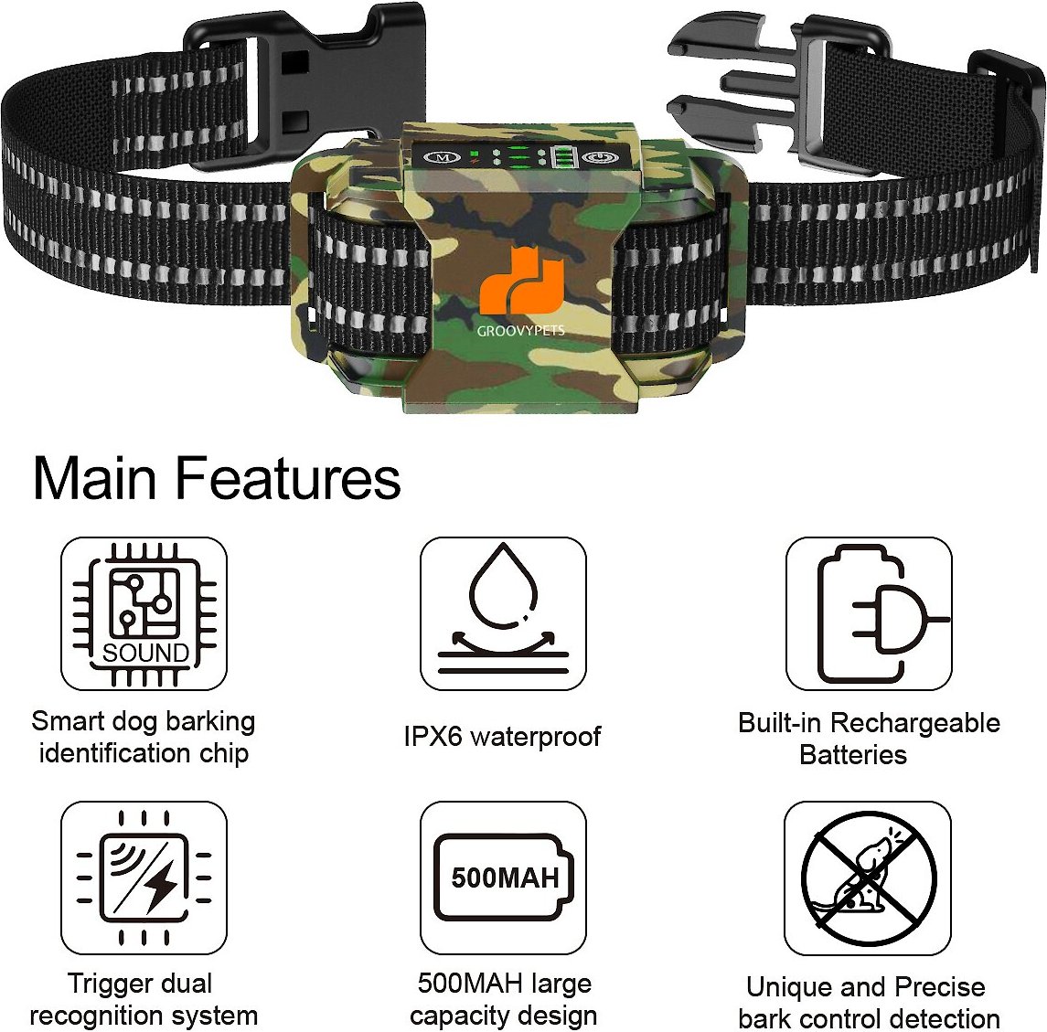 GroovyPets Rechargeable Waterproof Barking Control Automatic Anti Bark Dog Collar