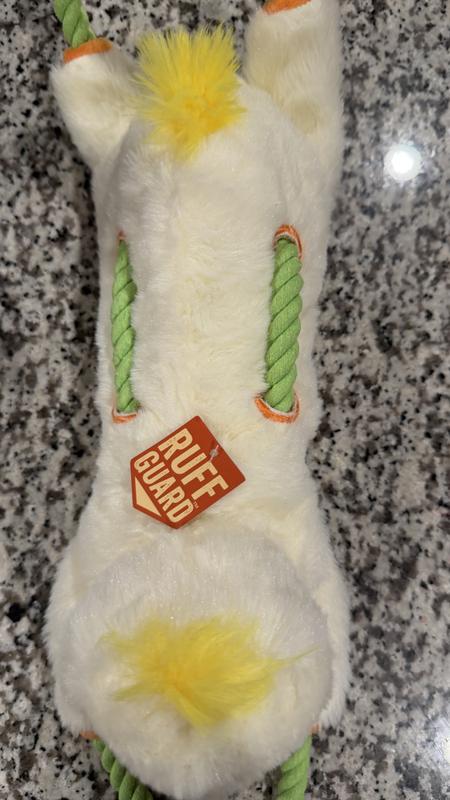 - A durable rope runs through the entire body, satisfying your dog’s instincts to tug and chew.