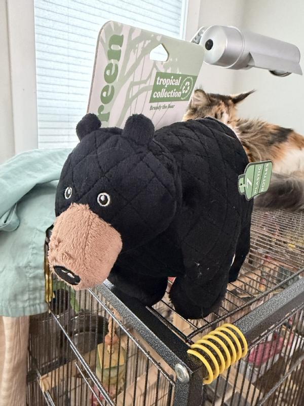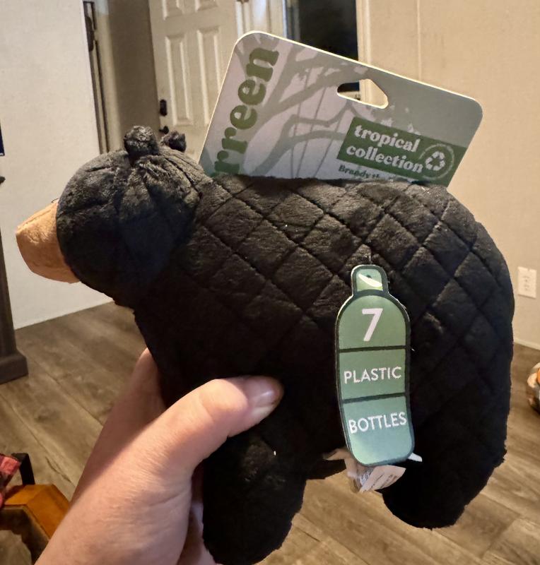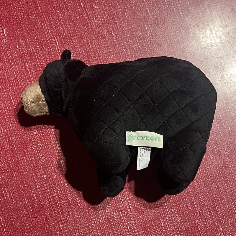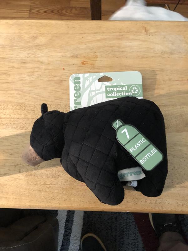 The Grrreen Black Bear is a cute squeaky toy and larger than I expected. While my dog didn’t care for it as much, my one cat likes to kick it around with his back legs. It’s plush and nice quality and would recommend.