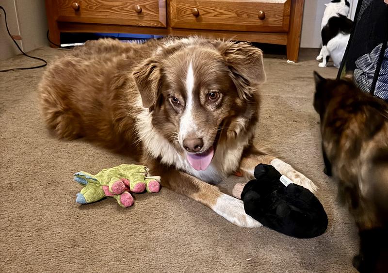 Ms Maddy loves her bear. The squeak toy deep too.