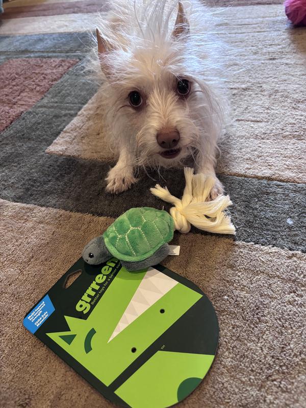 Grrreen Rope Turtle Squeaky Plush Dog Toy, Small