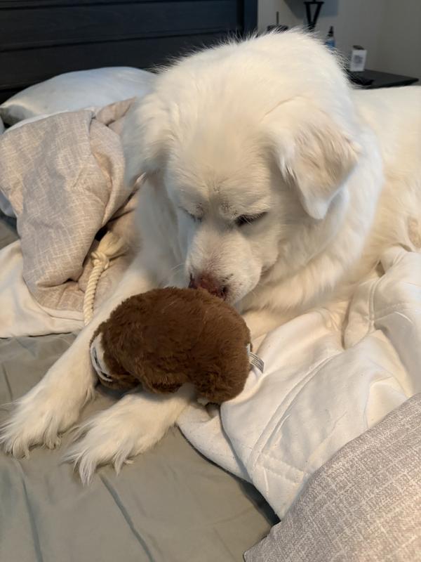 Lulu loves this toy as is evidenced by the fact that after two weeks she has not torn it to pieces. The toy has a squeaker and she usually feels the need to remove
