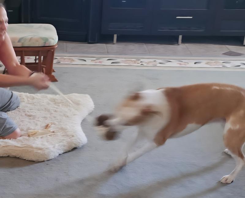 Dog could not get this toy fast enough. He loves to put in my lap and grab the rope to play. We have played so hard we broke one of the feet that holds on the