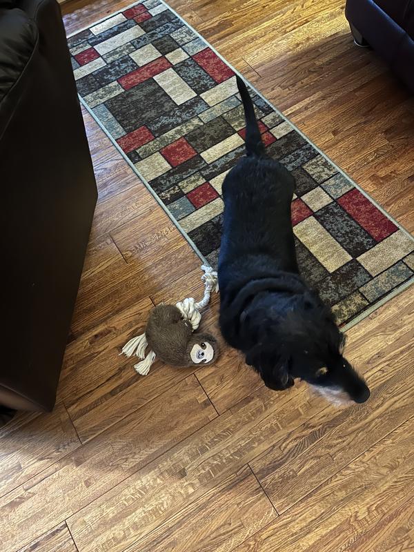 My girl loves this sloth squeaky rope toy! It’s durable, but maybe not for the serious chewer. I do wish there was more than just one squeakers in it. The rope slides
