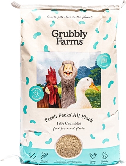Grubbly Farms Fresh Pecks 18% Protein All Flock Crumble Feed, 30-lb bag