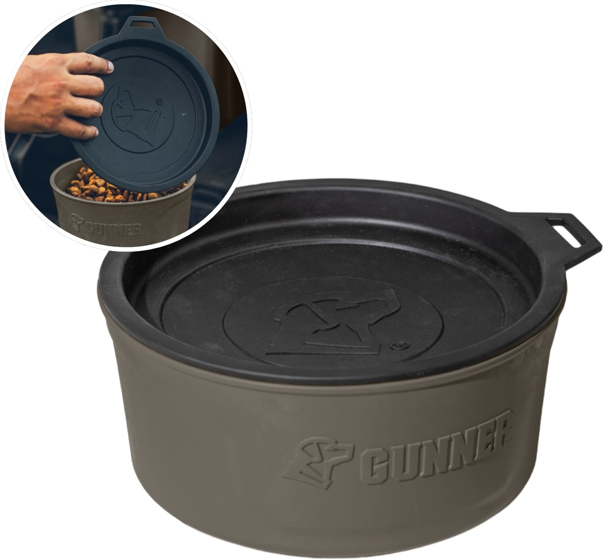 GUNNER Spill-Proof Lid Non-Skid Plastic Dog Bowl, Gunmetal