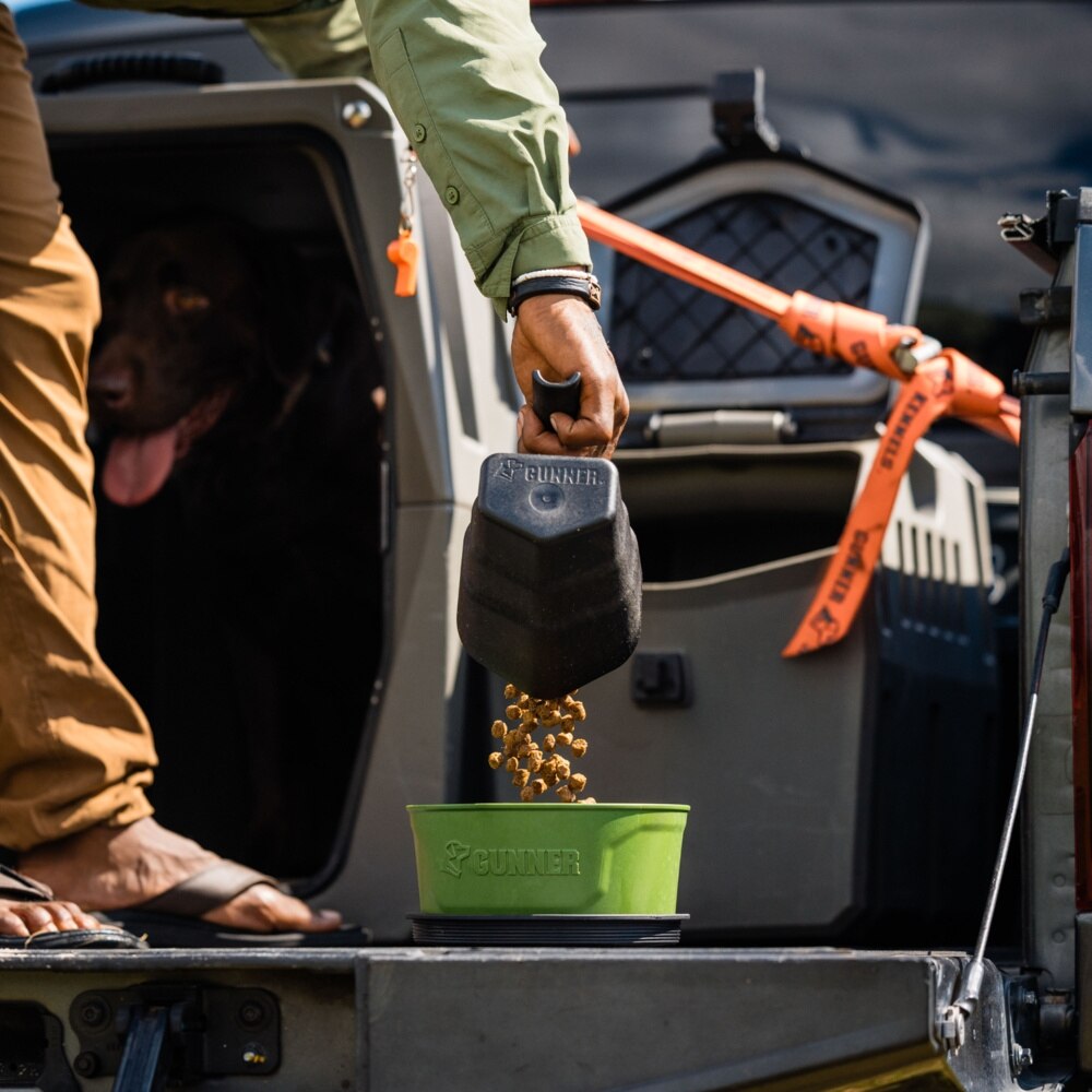 GUNNER Spill-Proof Lid Non-Skid Plastic Dog Bowl, Duck Green