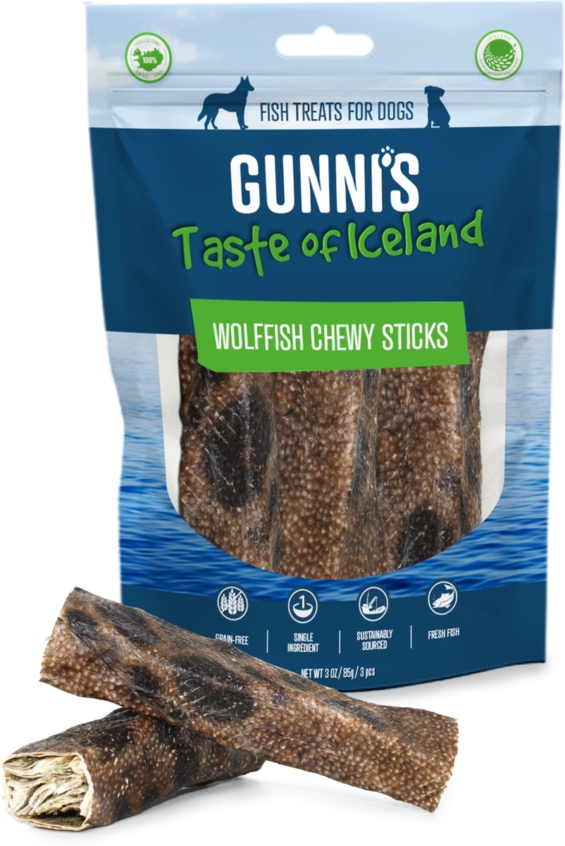 Gunnis Taste of Iceland Wolffish Skin Chewy Sticks Dehydrated Dog Treats, 3 count