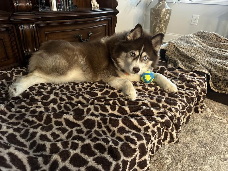 My dog loves the Guru max tennis ball! It’s durable, squeaks and is made from non toxic thermoplastic rubber !! The grippers on the ball are a great addition too! He enjoys playing with it then takes it over to his bed when he’s ready to nap!